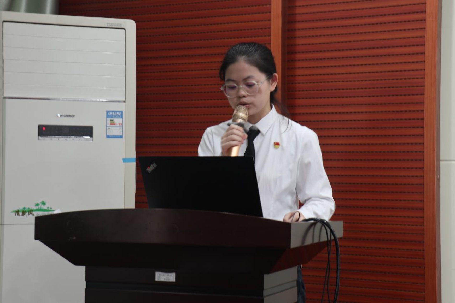 学生党员代表陈婉君发言,她分享了自己的成长历程,“作为党员,应脚踏实地,无私奉献,在学习、社会活动、团队协作中起到先锋模范作用。同时呼吁新生在实践中理解伟大精神,用内心感受时代脉搏”只争朝夕,不负韶华,勤于学习,敏于求知,为学院的发展和个人的成长贡献力量。