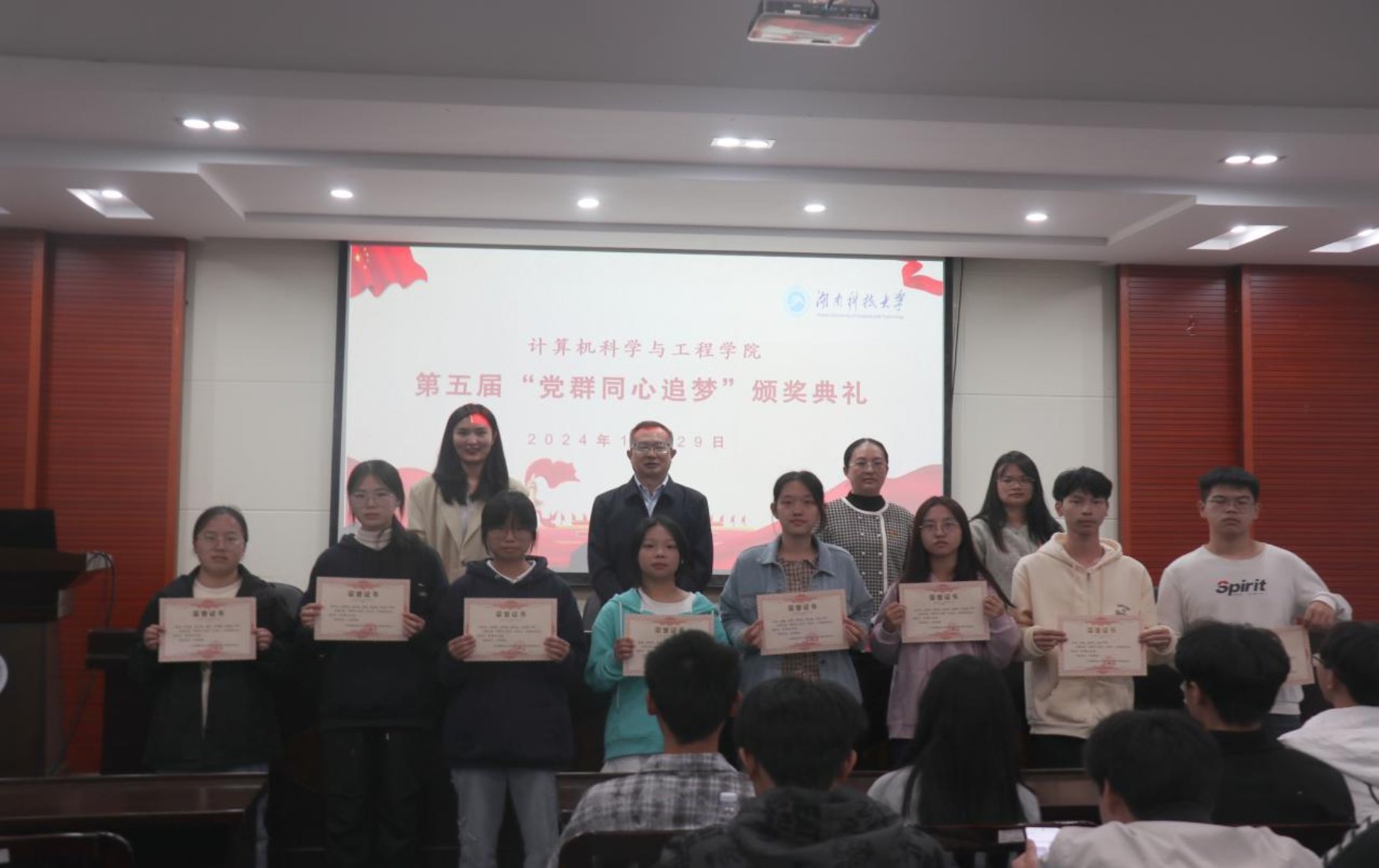 我院为发挥学生党员的先锋模范作用,进一步密切党群关系,10月29日下午,云鼎国际4118登录成功举行第五届“党群同心追梦”颁奖仪式暨第六届“党群同心追梦”启动仪式。院党委书记黄伟,学工办主任王艺蓉,专职组织员艾源源,辅导员王丹丹出席,21、22级党员代表,23、24级学生代表与会。