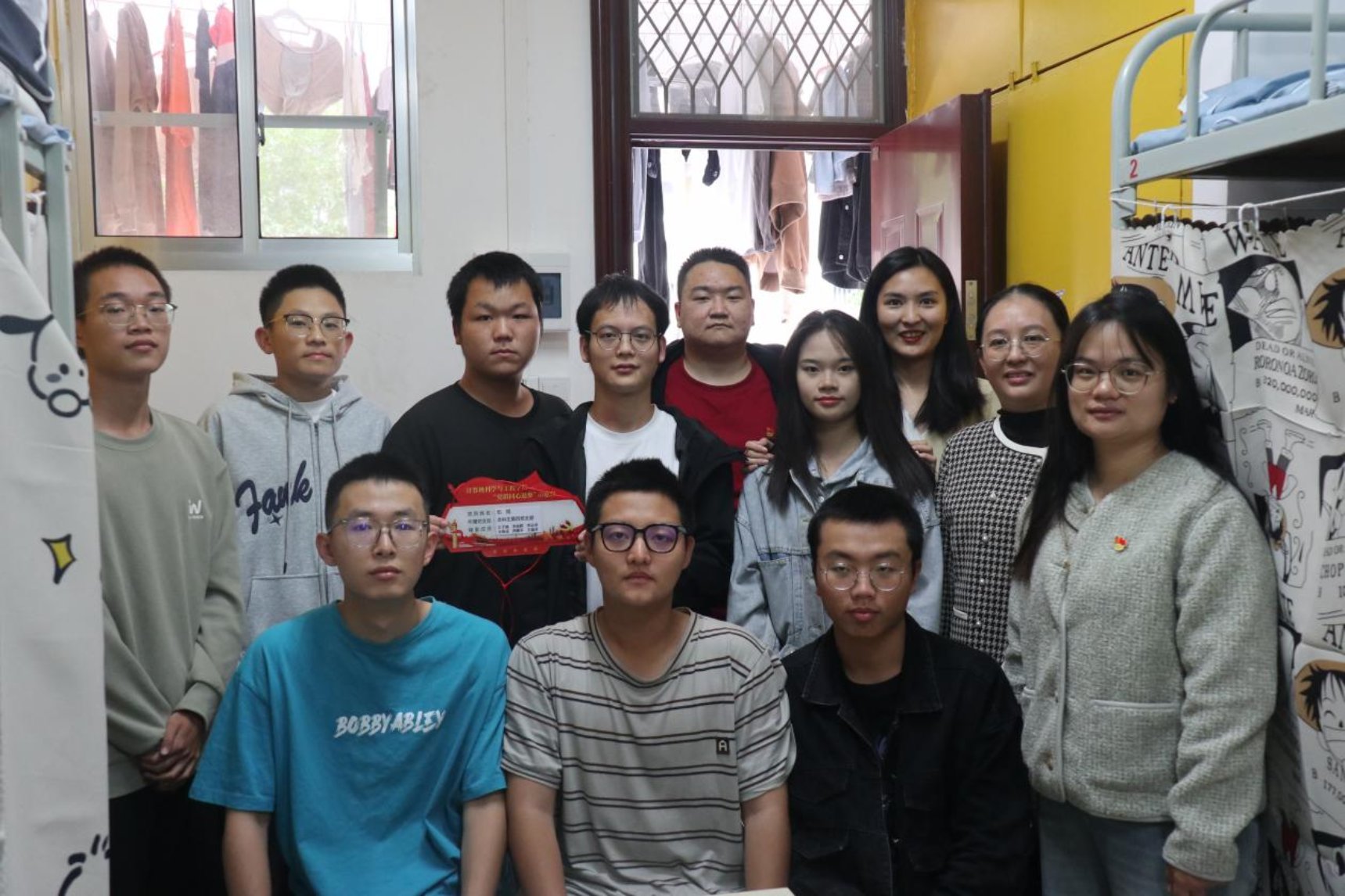 ▲学生党员为新生寝室挂牌
