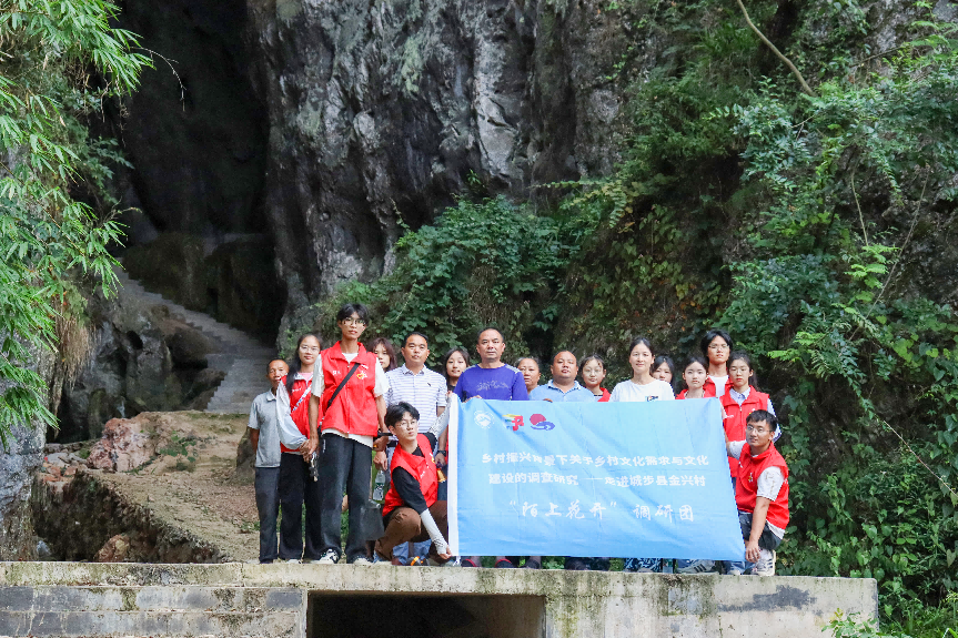 广袤乡村现新貌,锦绣山河绽活力。高山峻岭之间,瀑布倾泻而下,冲击着岩石。听着八位神仙在洞口下棋的神话故事,走进凉爽的清风溶洞,像进入了神话的世界,四周一篇漆黑,志愿者们拿着照明灯,跟随村民,深入洞内,看到地下河流穿行,洞内溶石形状各异,有连接天地的“擎天柱”,有闪闪发光的“银子岩”,有耸入云端的“龙椅”,调研团探索其中,感受到大自然的鬼斧神工并感叹溶洞空间巨大。瀑布流淌出金兴村的历史,清风洞见证了金兴村的发展,村干部抓住机遇,依托旅游公司,结合瀑布与溶洞特点,正在探索如何进一步开发两处旅游资源,吸引更多的游客前来参观。