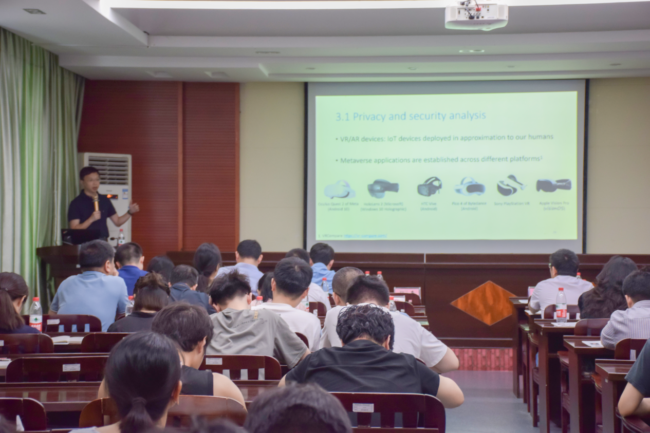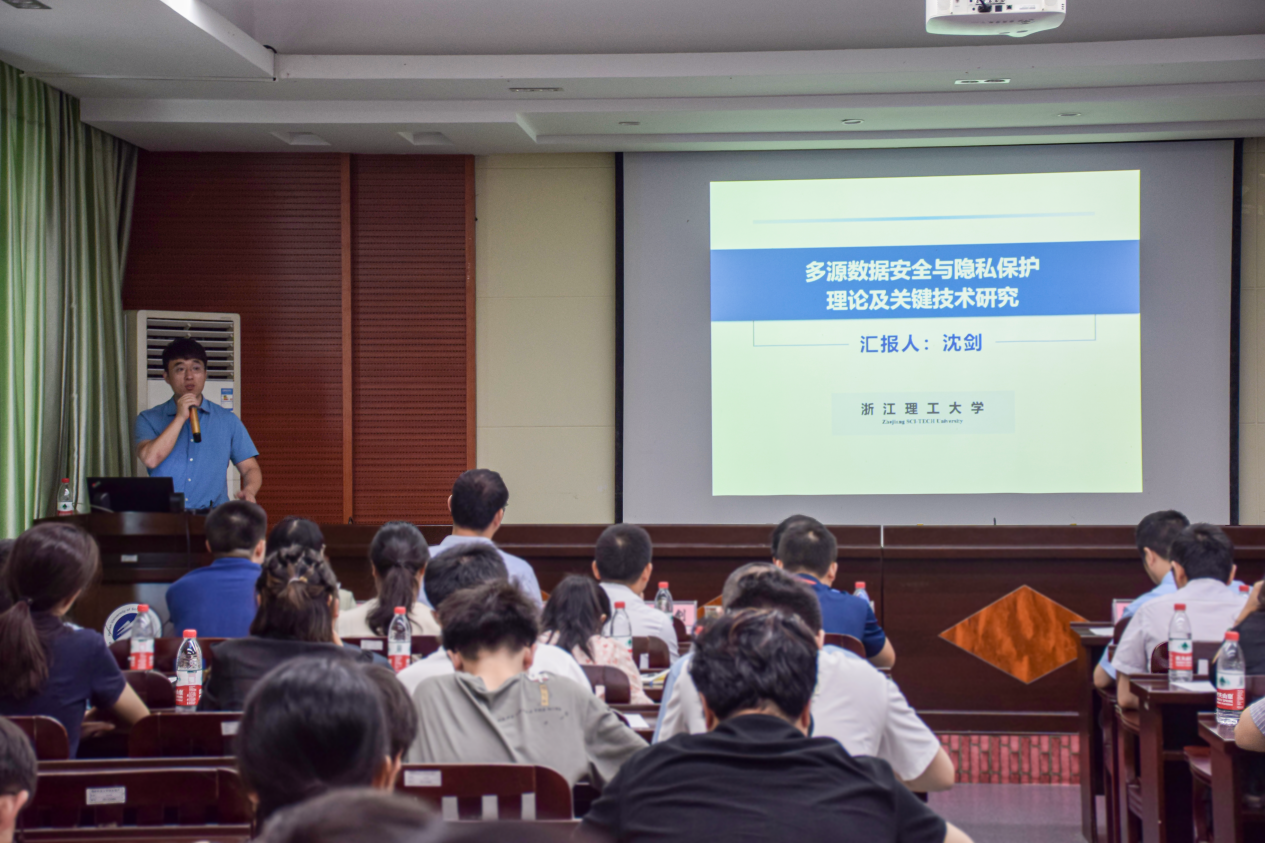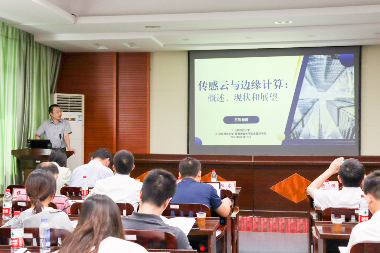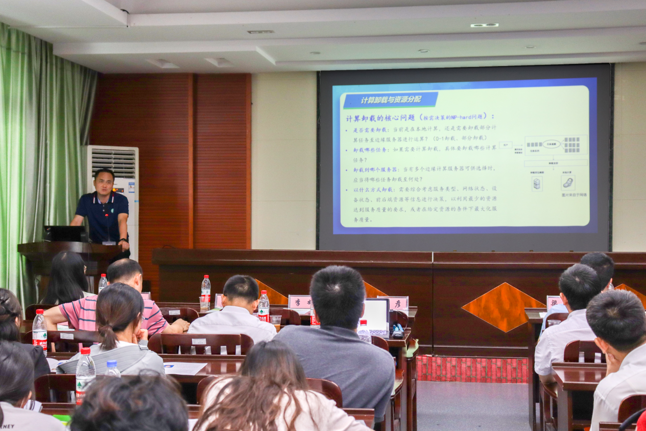 报告会上,八位专家教授做专题学术报告。其中,挪威奥斯陆大学张彦教授就“Machine Learning in Digital Twin Edge Networks”作报告,围绕数字孪生、边缘服务器等方面展开讨论。浙江理工大学沈剑教授围绕“多源数据安全与隐私保护理论及关键技术研究”进行讲述。北京师范大学王田教授作了主题为“传感云与边缘计算的概述、现状与展望”的专题报告。电子科技大学李雄教授围绕“面向物联网隐私保护的多维度范围查询”作报告,并表示隐私计算技术的实质是数据的安全处理与分析,其应用前景十分广阔。香港浸会大学戴弘宁副教授作了主题为“面向高拓展性、安全、隐私保护的元宇宙:挑战及给予”的报告,讨论了元宇宙系统所面临的挑战以及当前的一些解决方案。澳门大学吴远副教授以“Towards Efficient and Flexible Semantic Communication over Heterogeneous Wireless Networks”为题对其报告进行讲述。东莞理工大学陶铭教授围绕“移动边缘计算AI赋能的资源定价及卸载策略”进行阐述。西北工业大学孙文教授围绕 “开放动态环境下联邦学习关键技术研究”作专题报告。