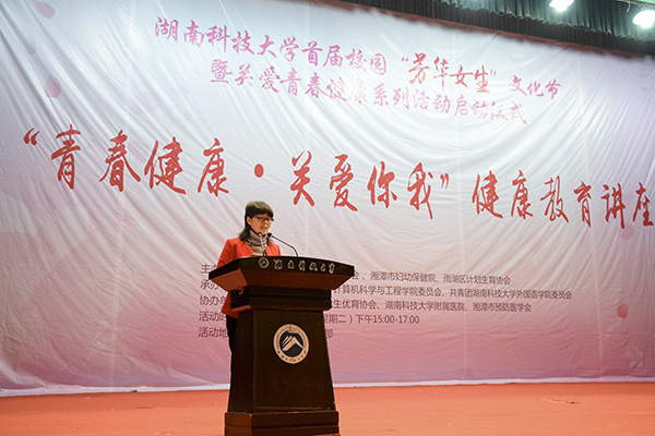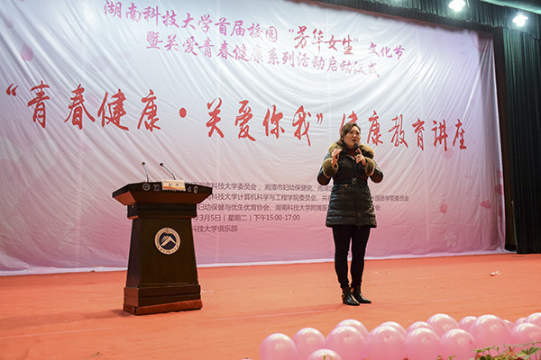 为普及女性保健知识,增强女性的自我保健意识,3月5日下午3点,云鼎国际4118登录于南校俱乐部隆重举办了首届校园“芳华女生”文化节暨关爱青春健康系列活动启动仪式。我校副校长胡石其,湘潭市妇幼保健院党委书记王君洁,雨湖区计划生育协会会长官国辉,校团委副书记马缤辉、王艳,我院党委副书记周筱芬,湘潭市妇幼保健院副院长洪春辉,雨湖区计划生育协会常务副会长谭丽君,湘潭市妇幼保健院妇保科副主任刘丹出席此次活动,各学院女生代表与会。