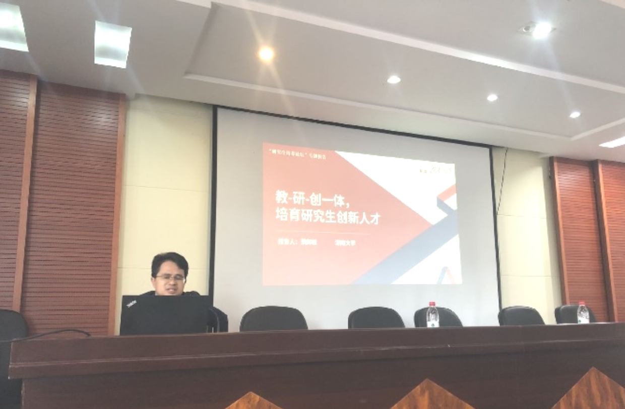 荣辉桂副教授以“教-研-创一体,培养研究生创新人才”为题,从四个角度出发,指出培养研究生的方向是通过新的理论,开辟新的领域,探索新的路径。研究生培养的核心是培养创新思维、创新精神。他提倡导师应立足教学,推动科研方向,借助科研成果,驱动双创大赛,进一步孵化企业,反过来再用案例、成果指导教学,在这个过程中做到研究生创新人才的培养。